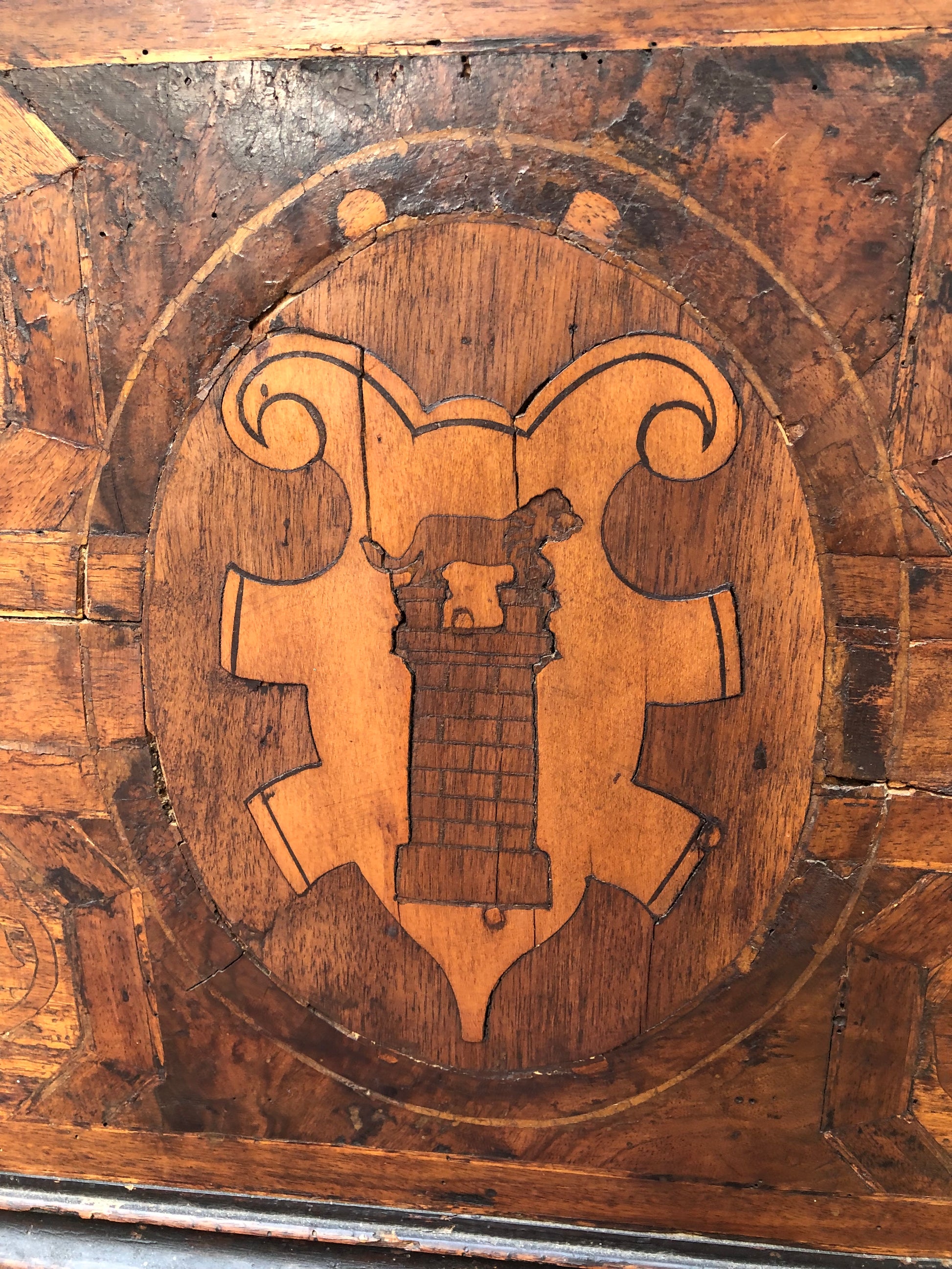 Medieval 17th Century European Armorial Box With Coat of Arms